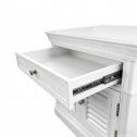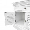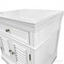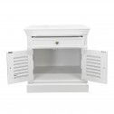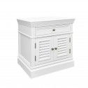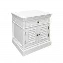 Bring timeless Hamptons elegance to your bedroom with this beautifully crafted bedside table. Finished in a crisp white tone, this piece features classic panel detailing, a single top drawer for everyday essentials, and double louvered doors that add both texture and coastal charm.
