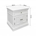 Designed for both style and practicality, the cabinet offers concealed storage to keep your space neat and organised, while the solid construction ensures durability for everyday use. The antique-style metal knobs complete the look with a subtle vintage touch, making this bedside table a perfect match for Hamptons, coastal, or classic interiors.