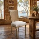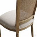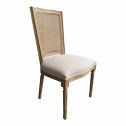 Inspired by classic European design, this French Provincial and Hamptons oak dining chair features a beautifully hand-woven rattan cane backrest, a softly upholstered seat, and elegantly hand-crafted legs that reflect timeless craftsmanship.