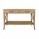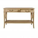 Hamptons Halifax Side Cross 2 Drawer Console Hall Table with Side Pull Out - Oak
