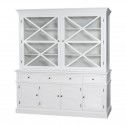 Hamptons Coastal Seaside Glass Hutch Cabinet and Buffet in Black/WHITE