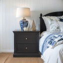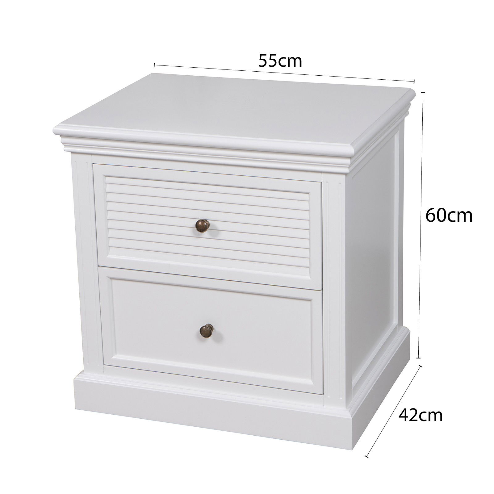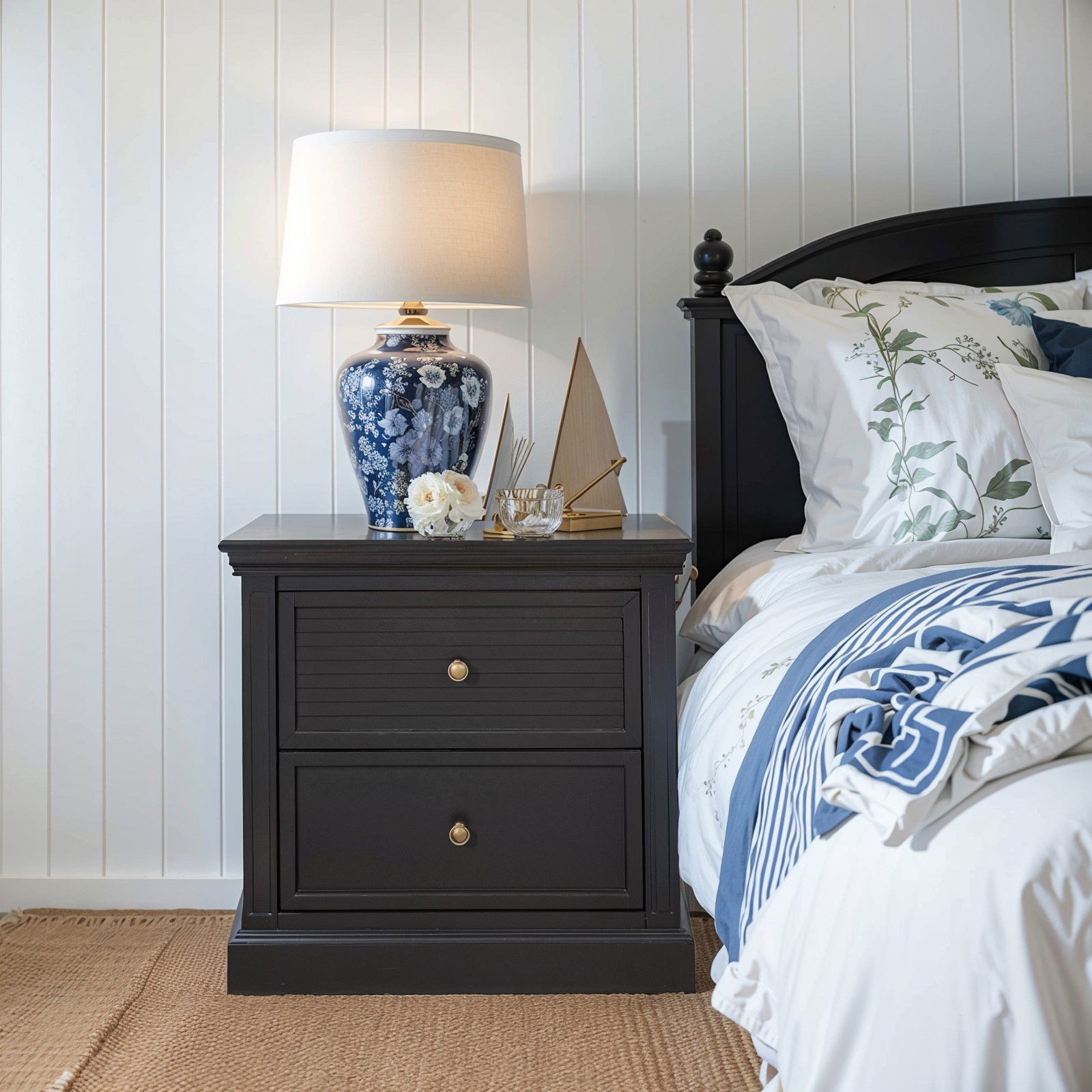 Hamptons Coastal Seaside 2 Drawer Bedside Table Night Stand in WHITE / BLACK(Upgraded Height)