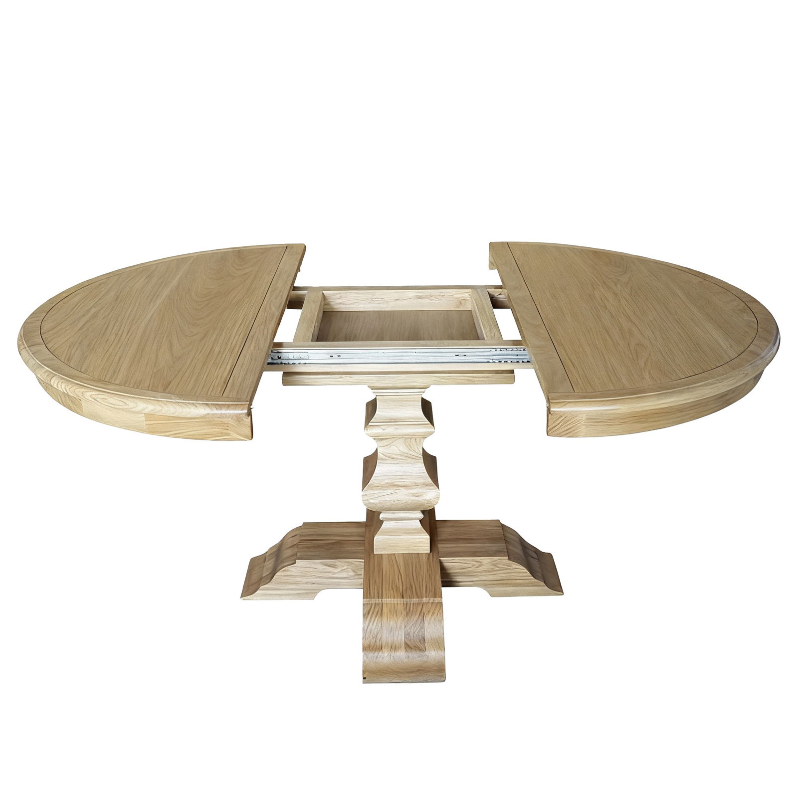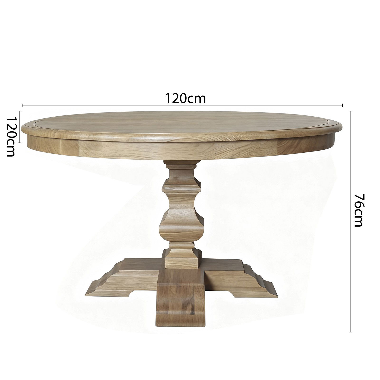 Classic French Provincial / Hamptons Style Extendable Round Dining Pedestal Table in Natural Ash – 120cm to 170cm