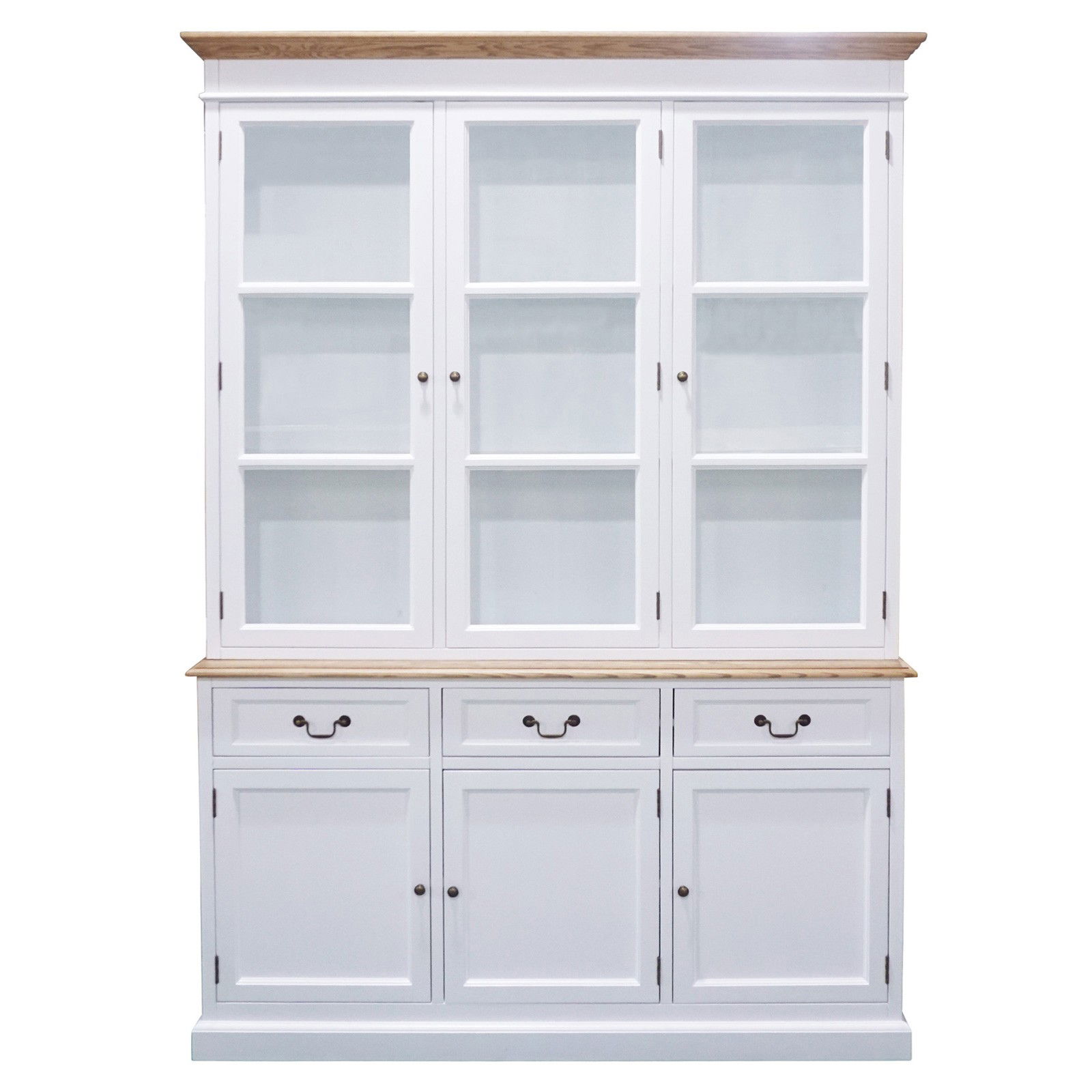 Hamptons Buffet and Hutch Tempered Glass Display Cabinet Bookcase with Drawers in BLACK or WHITE