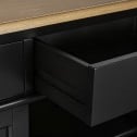 Hamptons Coastal Curve Sideboard Buffet & Console Cabinet – Black/White with Natural Ash Top and 2 Drawers