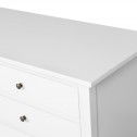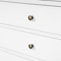 Finished in a smooth painted surface and available in Classic white or black, the piece brings a light, airy presence while remaining grounded and substantial. Six generously sized drawers provide practical storage for everyday living, blending beauty with function.