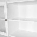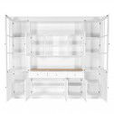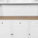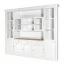 Hamptons Library Wall Unit Modular Buffet and Hutch Glass Cabinet with Cupboard in White with Natural Top