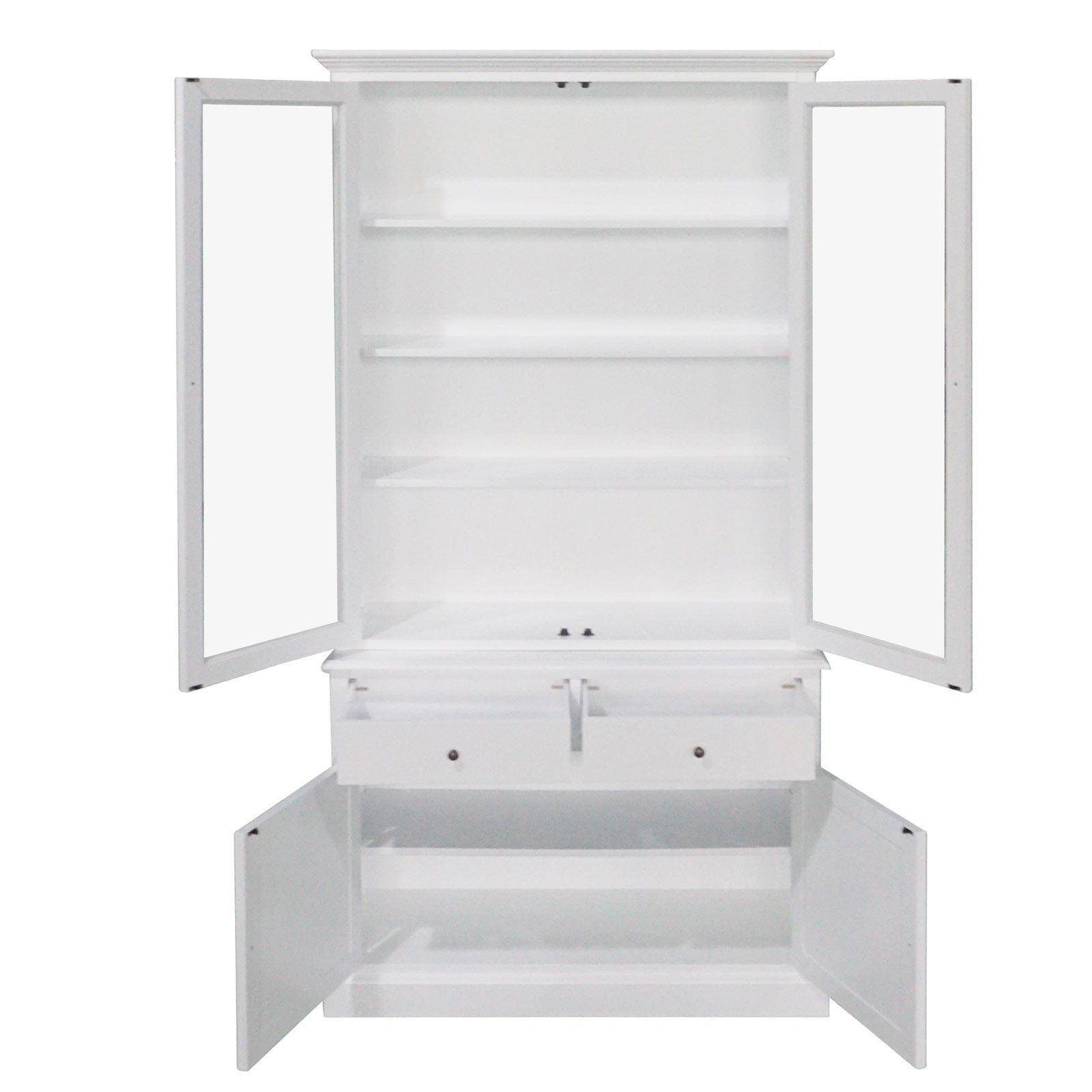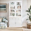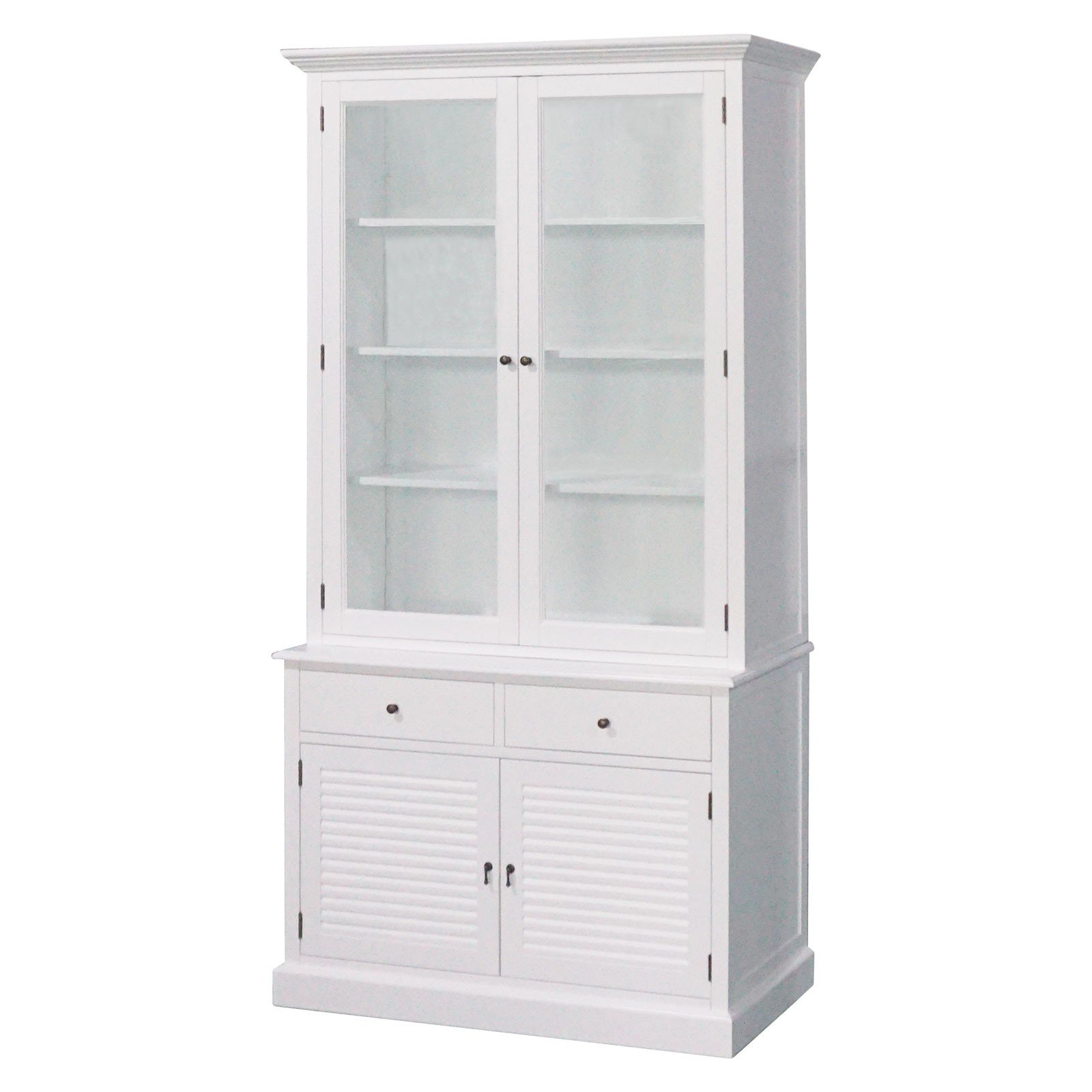Hamptons 2 Glass Door Hutch Display and Louvre Buffet Cabinet Bookcase Cupboard