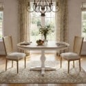 Hamptons French Provincial Extendable Pedestal Round Dining Table in Natural Ash Top & White Pedestal Base 100–150cm