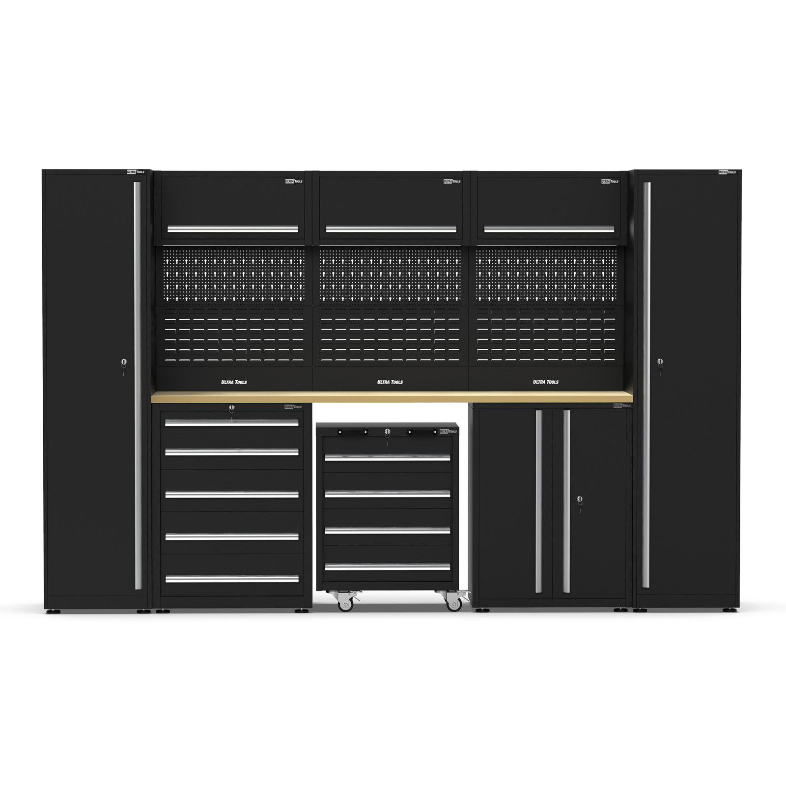 UltraTools 3250mm x 550mm x 2025mm Black Economy Workshop Garage Storage Cabinet Set